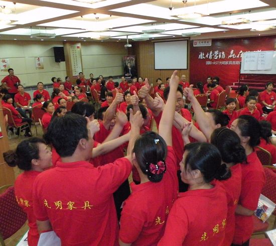 三天的培訓北京國富縱橫帶給光明家具的有軍事化早操訓練讓學員們更加嚴謹、更加激情面對每一天的學習。有思想上面的董曉明老師的打造卓越團隊的系列課程、有終端實戰銷售技巧的曹輝老師的《家具賣場成交20大經典法則》;王曉文老師的《家具銷售五行連環掌》。三天的培訓讓光明家具的所有員工緊緊的抱在一起學習到了如何面對未來的家具市場。