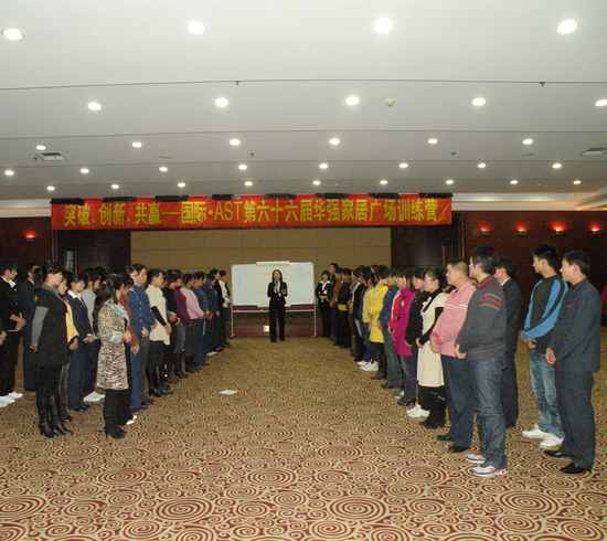 2009年11月12日國際•AST第六十六屆華強家居廣場訓練營在臨沂沂景假日酒店完美落下帷幕,來自華強家居廣場中高層管理人員、優秀經銷商、金牌店長、王牌導購共80多位學員參加了此次訓練營。華強家居廣場副總經理謝總在開班典禮上致辭,并表示山東華強家居廣場和北京國富縱橫管理咨詢有限公司是從策劃項目合作開始的,山東華強家居廣場所有員工會和國際•AST商學院共同在學習中成長,磨練中卓越!